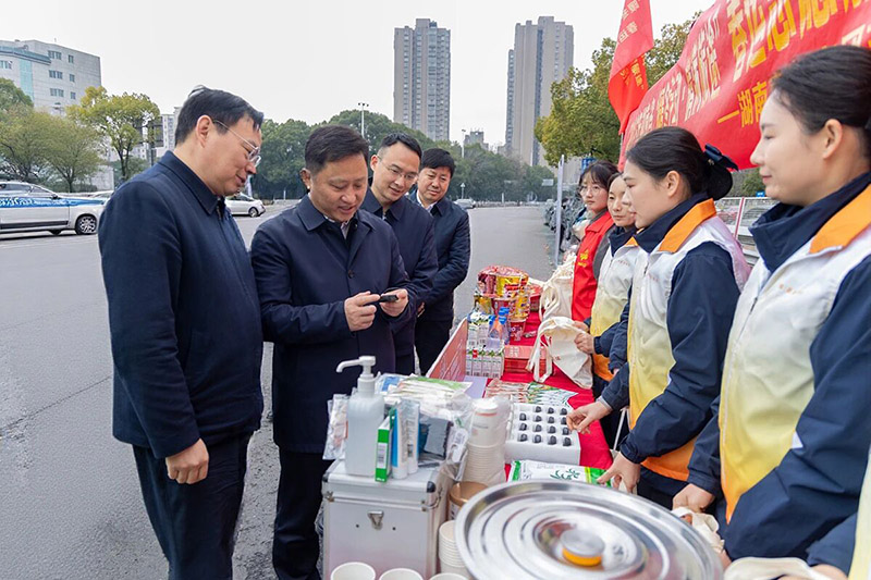 春运大幕开启,归途暖意融融。2月11日,团省委书记李志超一行来到公司长沙收费站志愿者服务点,看望慰问参加“暖冬行动”的春运志愿者,为他们送上新春祝福。集团公司党委书记、董事长、公司党委书记、董事长罗卫华,集团公司党委副书记书记万东,集团公司党委委员、公司党委副书记、副董事长、总经理唐前松,公司党委委员刘军等参加慰问。